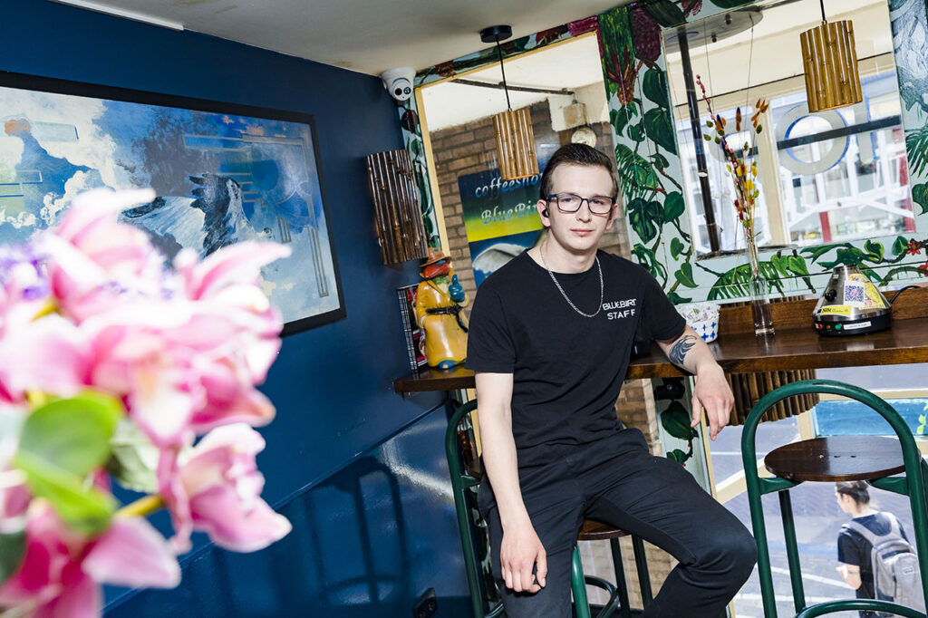 Ontmoeting en gebruiksruimte voor cannabisgebruikers waar de beste koffie van Amsterdam door een echte Barista wordt geserveerd.